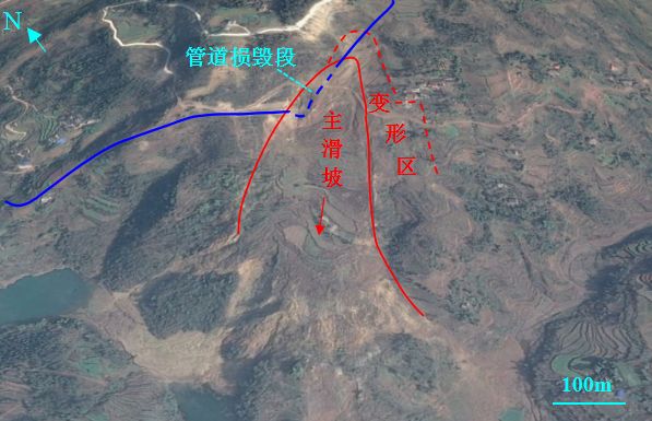 (2)注意滑坡体外、滑坡运动路径上管道安全防护。深圳光明新区滑坡剪出口距离管道.小距离达到70m,由于高速运动的碎屑流向下部的侵彻和剐蹭作用,导致管道损毁。此前我们更多关注的是滑体中的管道安全,深圳光明新区滑坡损管的案例,为存在类似情况的管道安全防护敲了警钟。