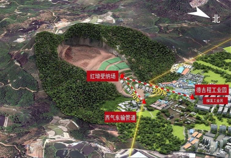 图6 红坳受纳场地理位置示意图(据*务院事故调查组,2016)